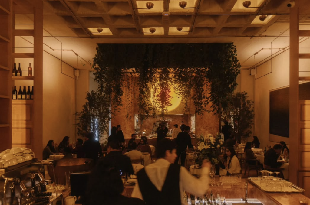 Proyecto de tres hermanos (Kiara, Jess y un tercero) que cocina desde la memoria de sus abuelas y sus padres. Mesa comunal de mármol rojo, esquites con chapulín molido, enmoladas de plátano, tejuino con tequila. Cocina que abraza sin caer en lo monchoso. Espacio diseñado por Camila y Ricardo con madera oscura, piedra y colores crudos.