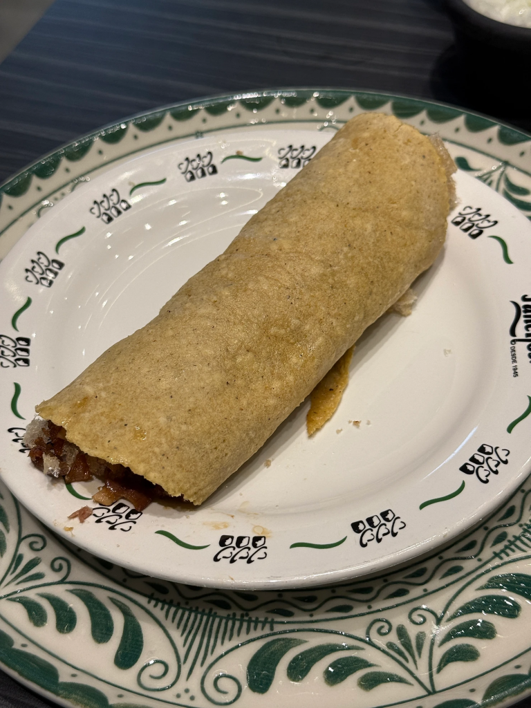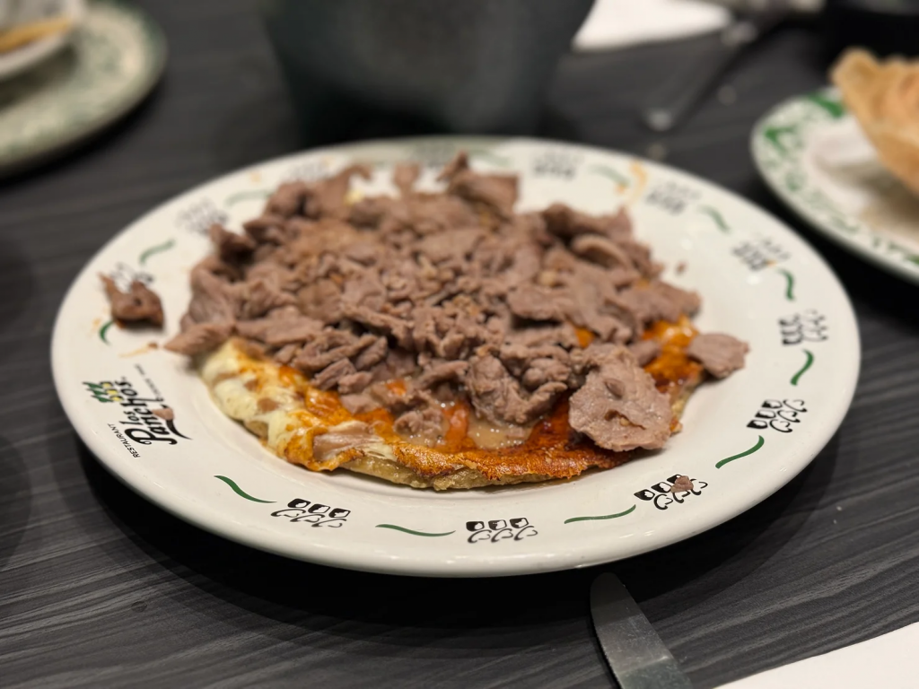 Y entonces: el taco campechano. Ahí entendí muchas cosas. Por ejemplo, por qué este restaurante ha durado casi 80 años. Por qué a veces no hay que inventar nada, solo saber hacerlo bien. Carne generosa —unos 110 gramos calculamos entre bromas y teorías fallidas de matemáticas—, chicharrón picado, zanahoria rallada, verduritas en vinagre. Tres capas de textura, tres dimensiones de sabor incluso sin ácido. Comparado con otros tacos campechanos que he probado —los de carnitas rosas del mercado gourmet, los que presumen nombres largos pero esconden cortes sin alma—, este se impone sin alardes. Es taco de verdad, sin filtro ni artificio.